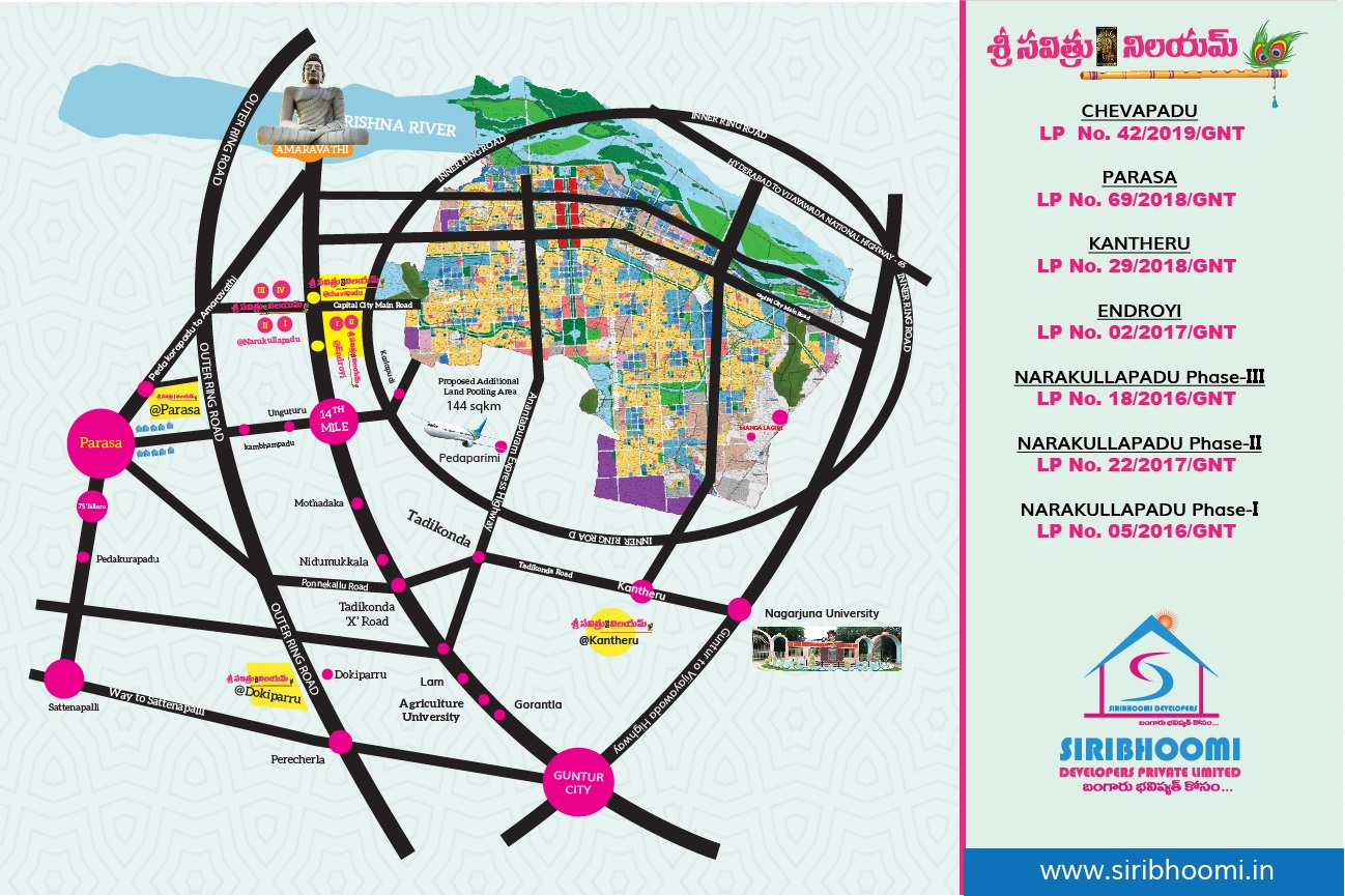 Sri Savithru Nilayam @ Narukullapadu Phase-II is a residential plot project situated in Narukullapadu, Amaravati. The project is conveniently located just a 5-minute drive from the new Capital of Andhra Pradesh and a 10-minute drive from the Andhra Pradesh Secretariat.